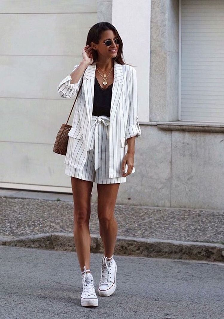 Por exemplo, um blazer e uma calça pode ser usado com salto fechado e uma regata mais “comportada”…fica ótimo para um ambiente corporativo. Agora troque por um salto fino, um top cropped ou um body e vira uma opção para barzinhos e baladas. Ainda dá pra utilizar com tênis e camiseta e ficar mais despojado para tarde ou noite. Opções é o que não falta… 😉