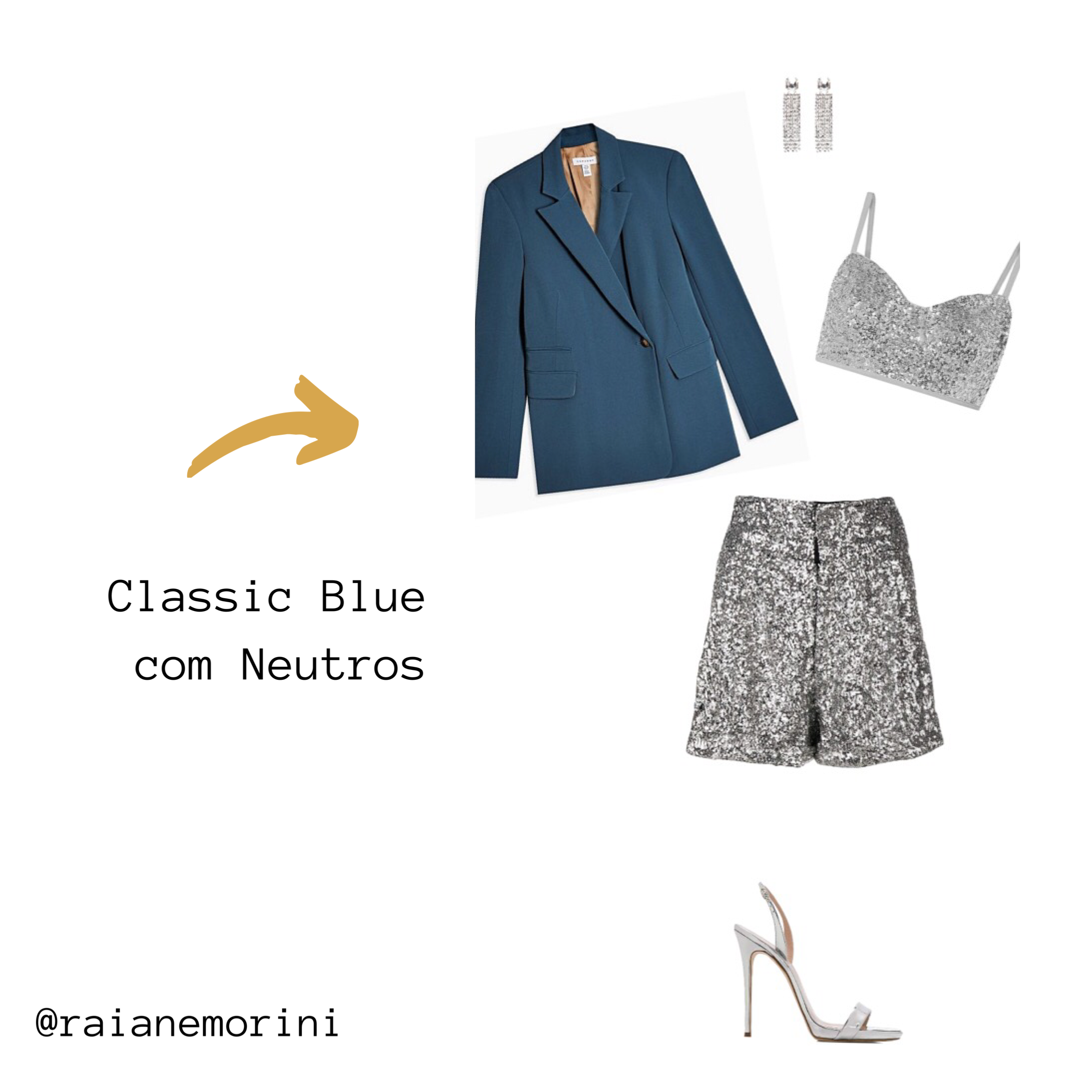 4 formas de usar o Classic Blue, cor escolhida pela Pantone para 2020: neutros, optei pelo prata pra fugir do óbvio, mas claro, aqui entra qualquer neutro! O laranja, cor completar, além do verde e roxo, suas cores análogas.