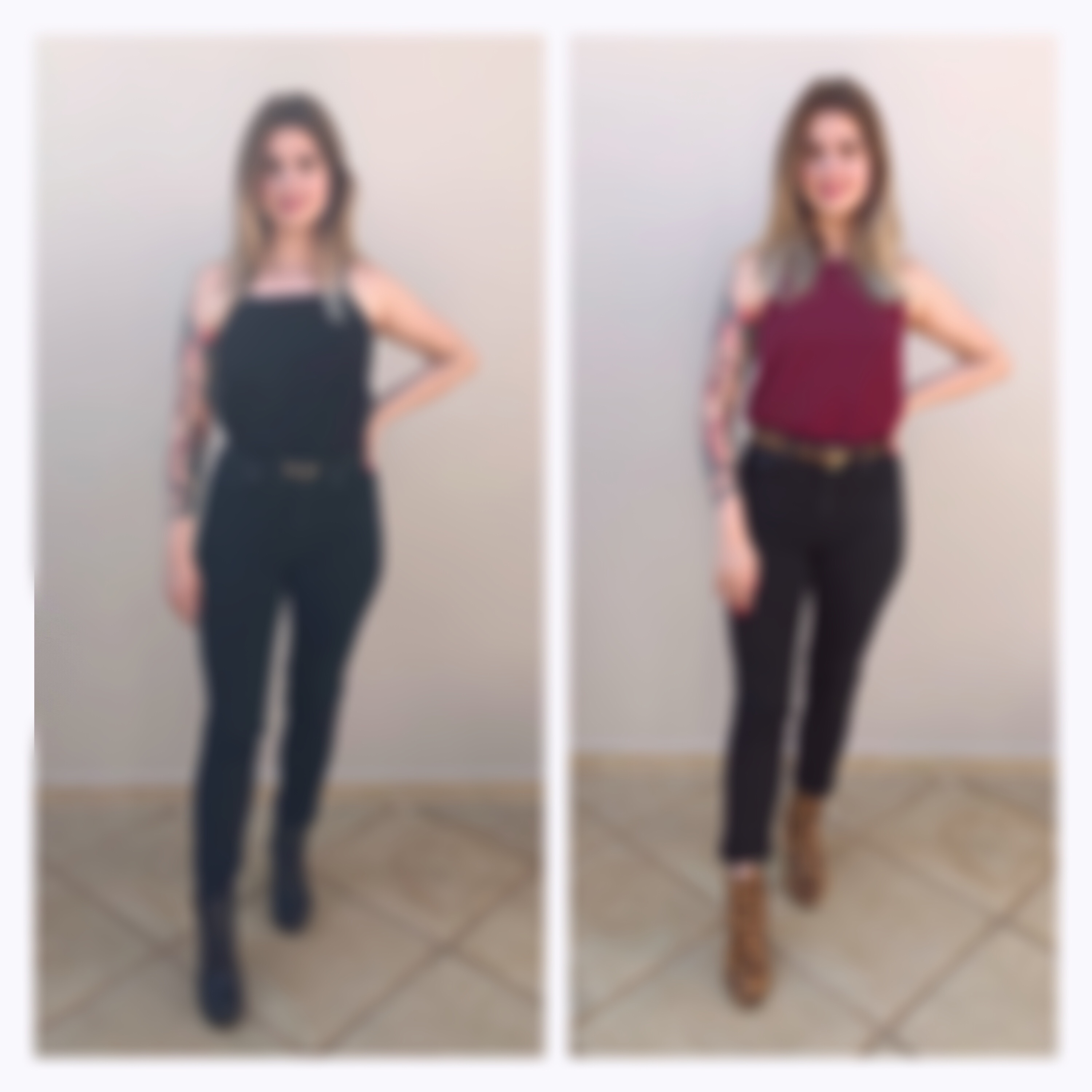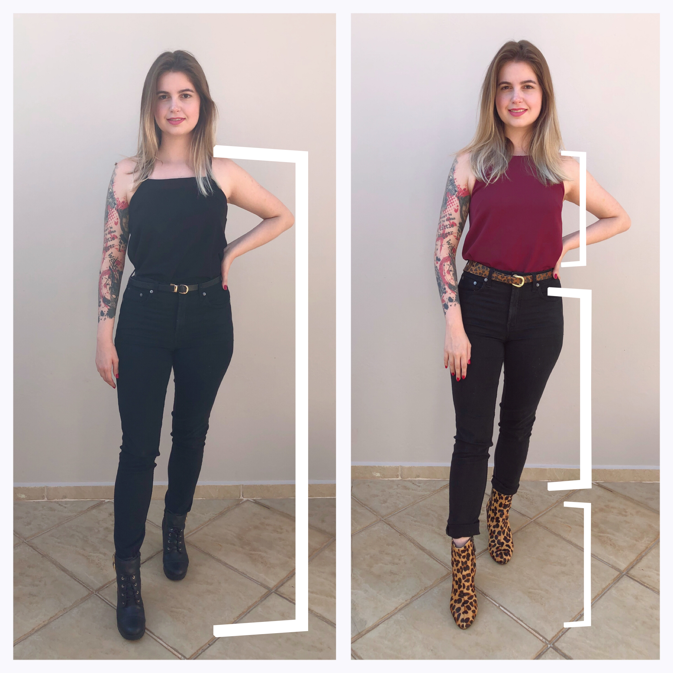 um look inteiro de uma cor os olhos captam inicialmente un bloco só (veja na segunda imagem como fica mais perceptível ccom o a foto borrada), já quando dividimos o look em blocos de cores, vamos fazendo a divisão e não temos um olhar contínuo, de uma coisa só como na primeira imagem! 💥