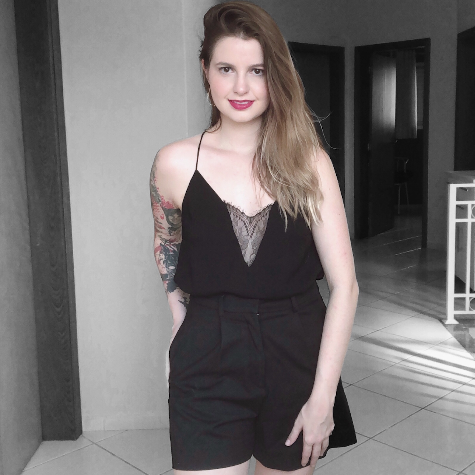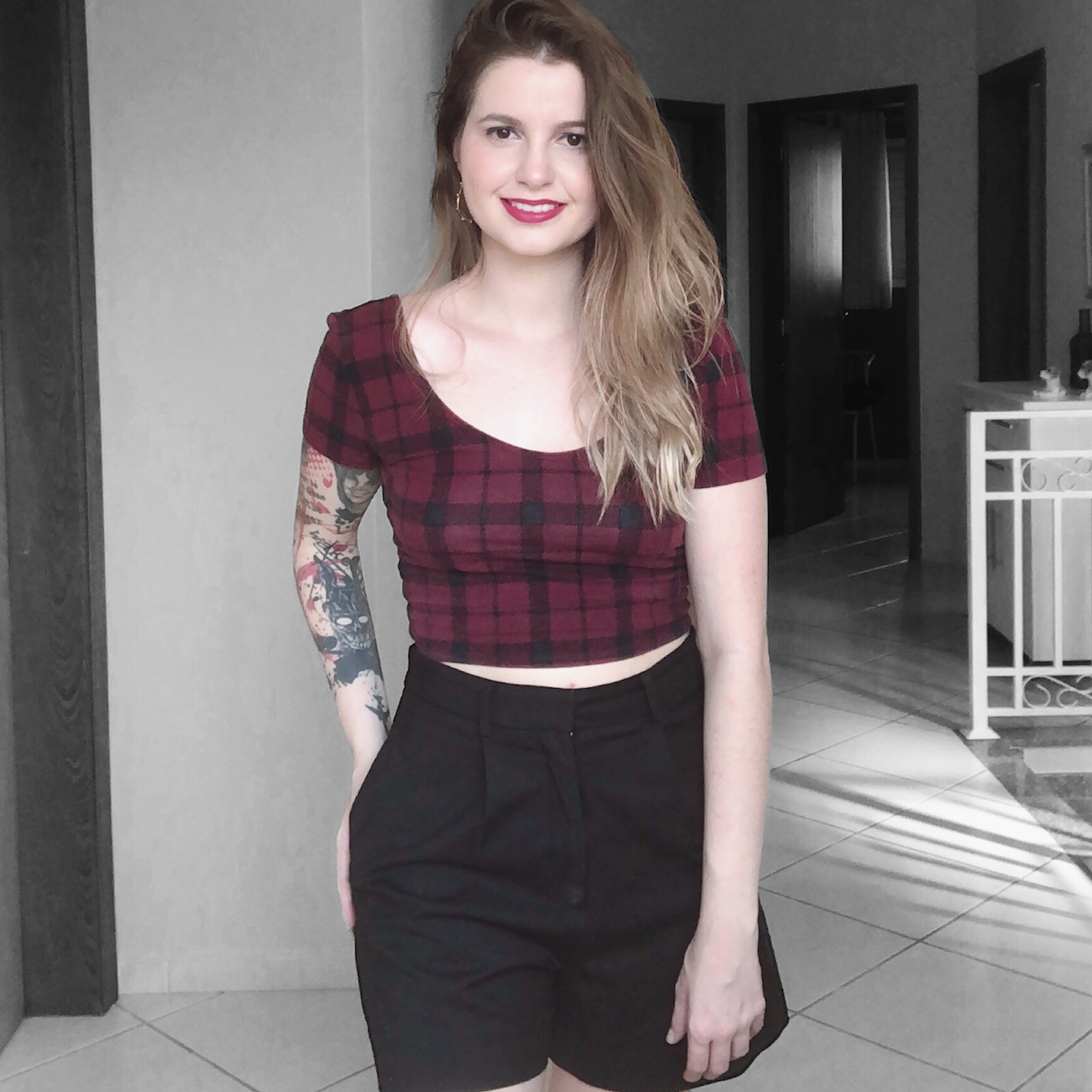 - TOP CROPPED: O top tira total a cara formal do look; a peça vem do Estilo Sensual e mostra uma pequena parte da barriga o que ajuda bastante 😉. Além disso, optei por uma opção de malha que traz maior informalidade!⠀