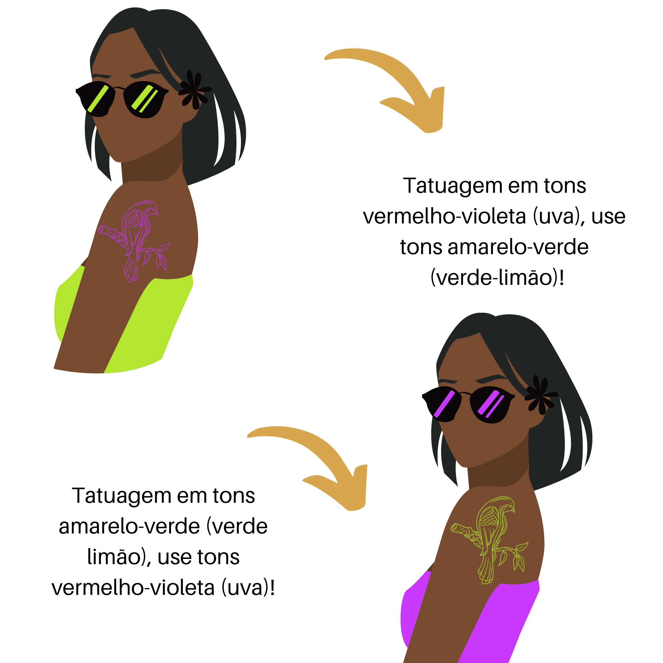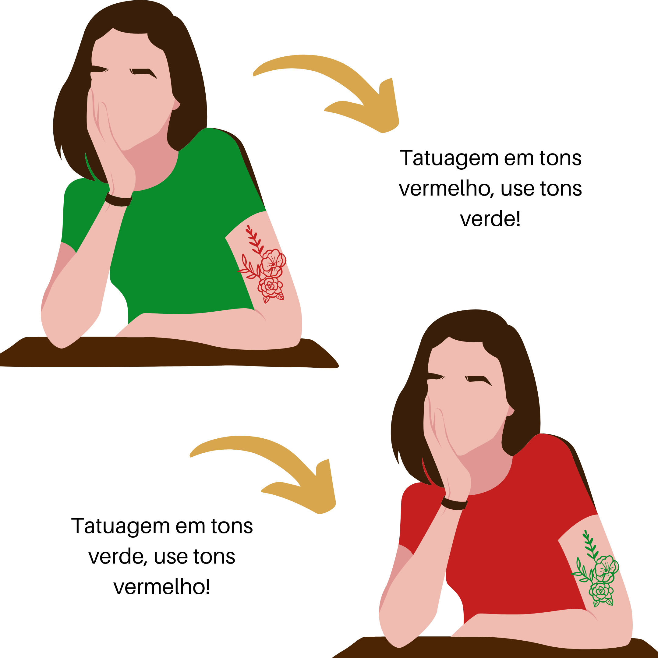Fiz esse guia para mostrar como eu uso a Teoria das Cores para combinar a roupa com a tattoo e destacar ainda mais as cores! 😎⠀